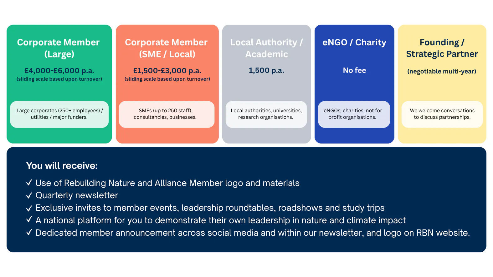 Membership offers early visibility of opportunities, access to evolving funding pathways, and the ability to influence how investment, policy and delivery come together, defining the national system that will guide how nature is restored, connected and financed for the long term.