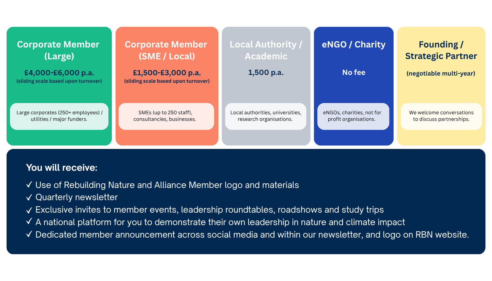 Membership offers early visibility of opportunities, access to evolving funding pathways, and the ability to influence how investment, policy and delivery come together, defining the national system that will guide how nature is restored, connected and financed for the long term.